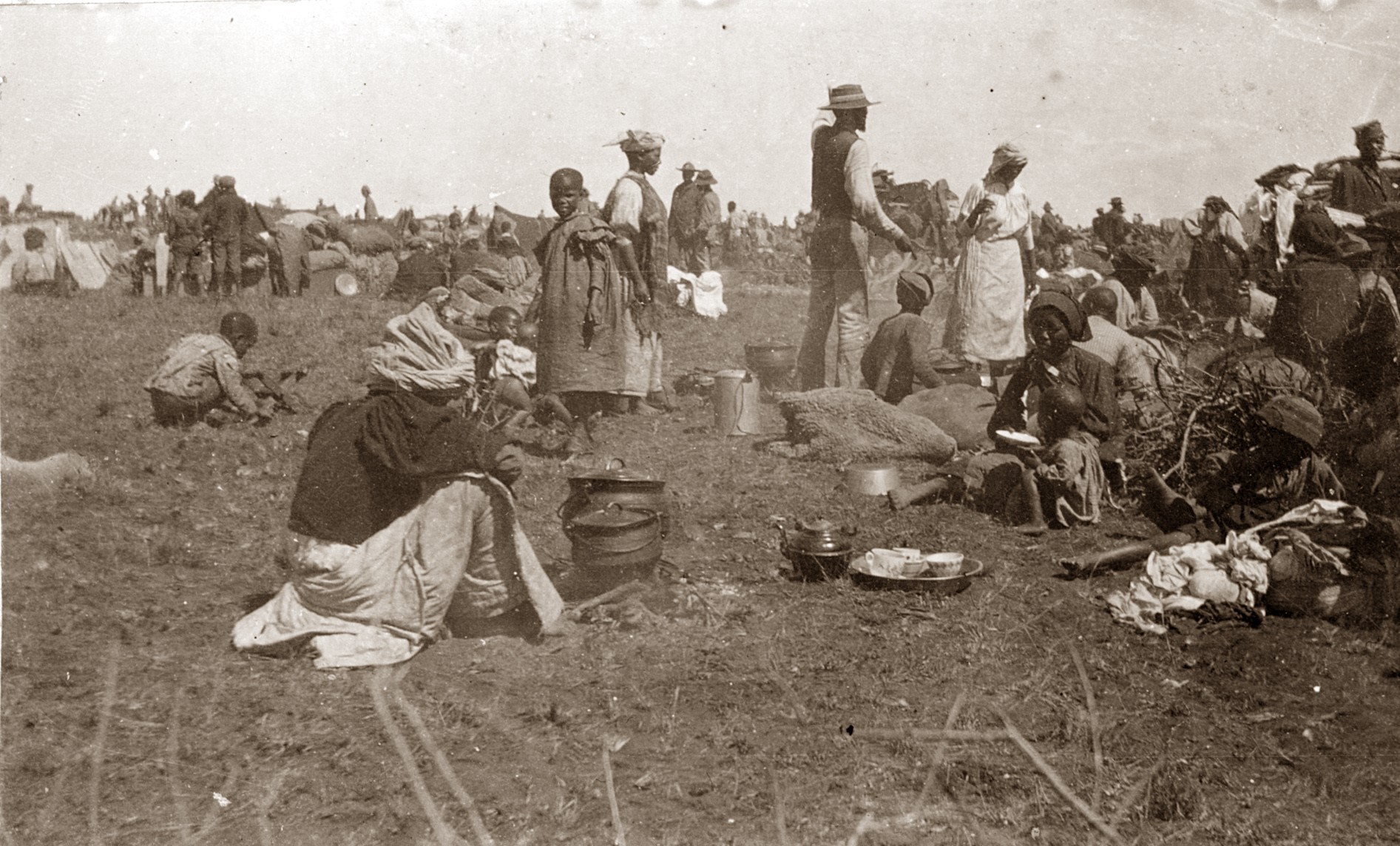 The men who were swept up from the Boer farms and surrounding areas were compelled to work for the British military and also on the gold, diamond and coal mines. The British government, therefore, introduced the “ no work, no food policy”, which was administered by the Native Refugee Department.